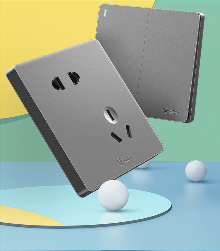 公牛(BULL) 明装开关插座五孔多孔开关面板86型墙壁家用明盒明线插座G12灰色+底盒组合 明装斜五孔
