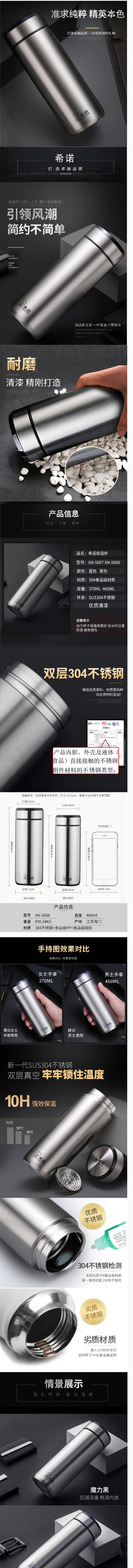 希诺(heenoor) 5608杯子 保温杯 460ML泡茶杯子真空车载家用茶杯不锈钢304水杯