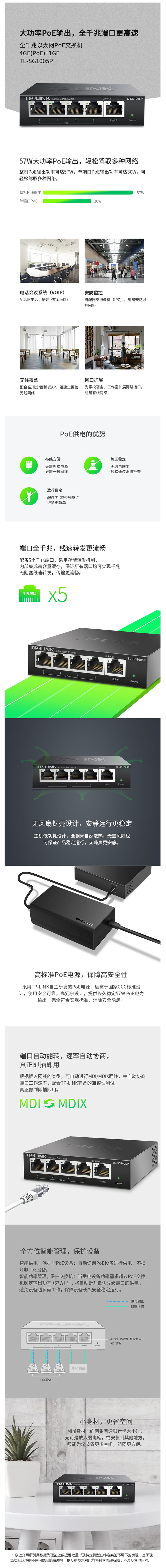 普联(TP-LINK) TL-SG1005P 5口千兆PoE交换机 4口PoE非网管交换机 监控网络网线分线器 企业级交换器 分流器