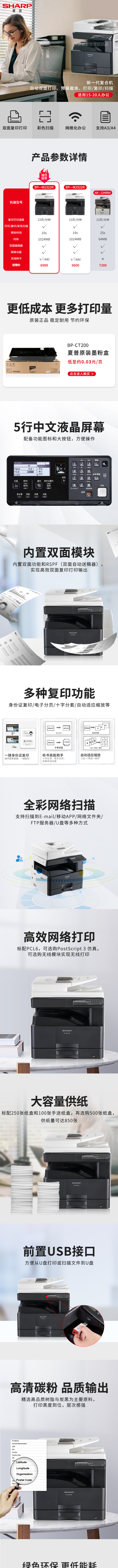 夏普(SHARP) BP-M2522R 复印机 A3黑白激光多功能一体机