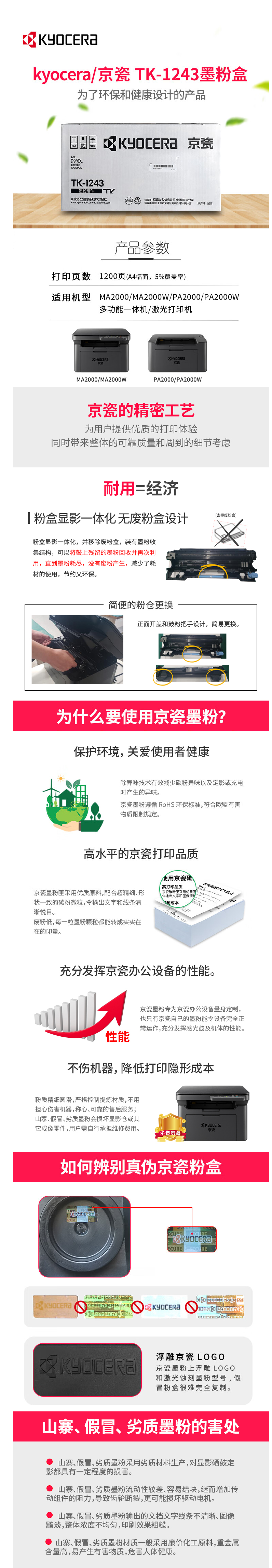 京瓷(KYOCERA) TK-1243 原装墨粉/墨盒组件适用于MA2000/MA2000w/PA2000/PA2000w打印机碳粉耗材