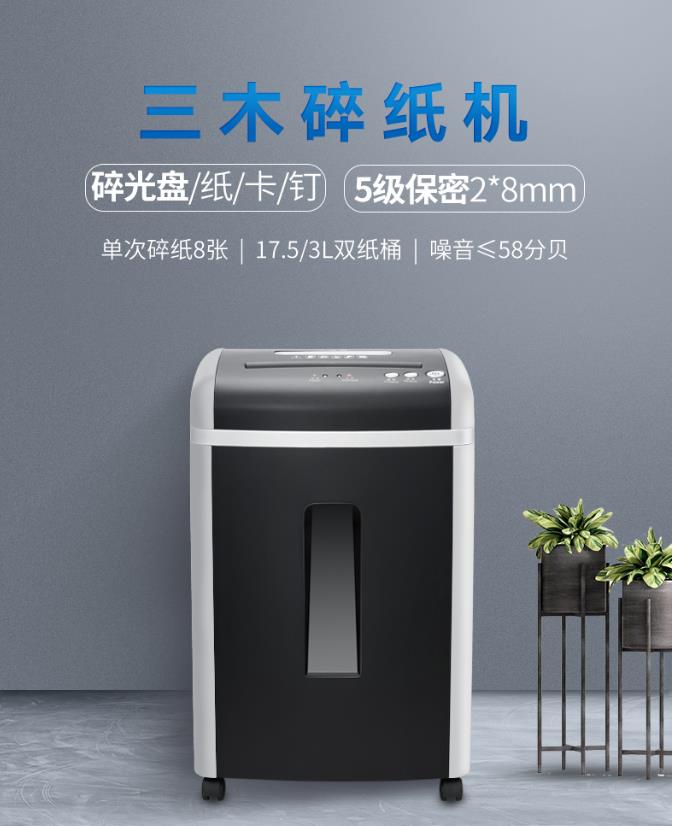 三木(SUNWOOD) SD9355 5级保密办公商用碎纸机 (单次8张 持续7分钟 17.5L 可碎纸,光盘,卡,回形针、订书针)