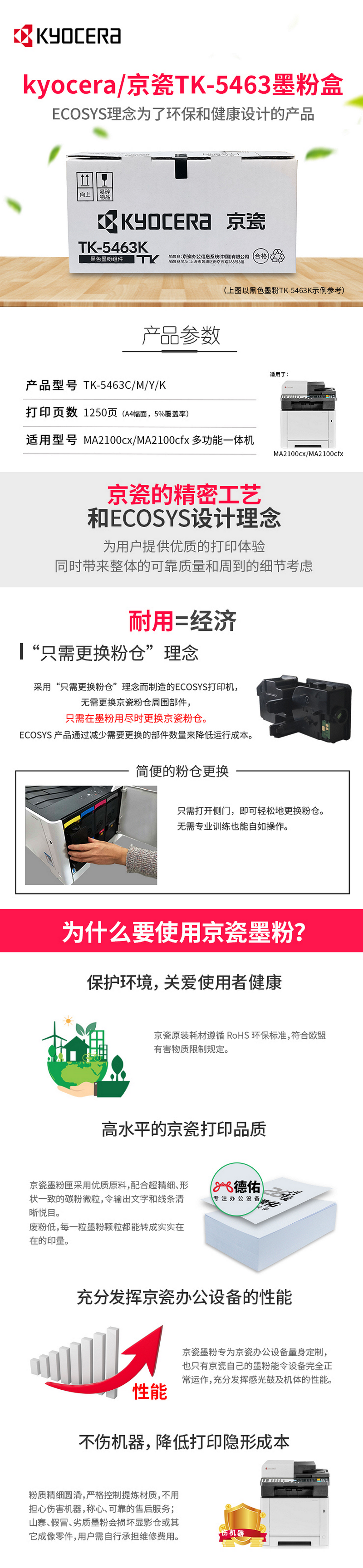 京瓷(KYOCERA) TK-5463K黑色墨粉/墨盒适用京瓷MA2100cx/MA2100cwx打印一体机粉盒耗材(单支)