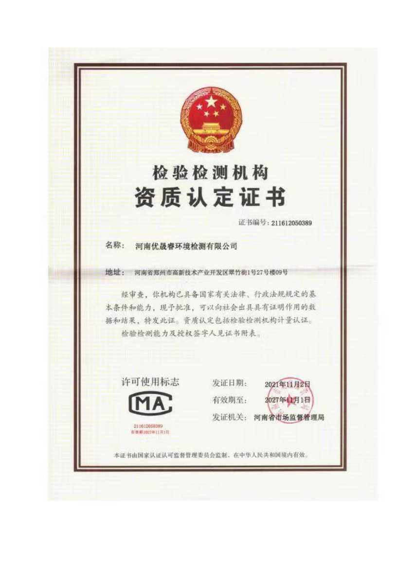 河南优晟睿环境检测有限公司
