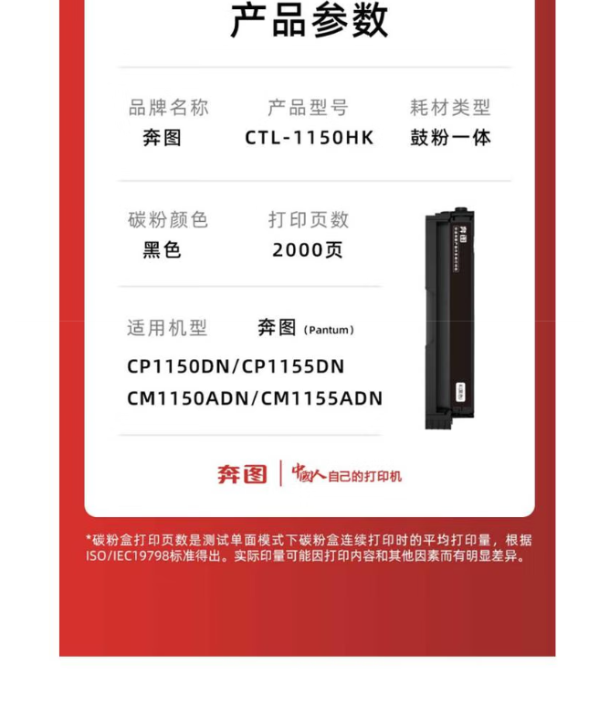 奔图(PANTUM) CTL-1150HK 黑色墨粉 适用于CM1150ADN/CM1155ADN/CP1150DN/CP1155DN