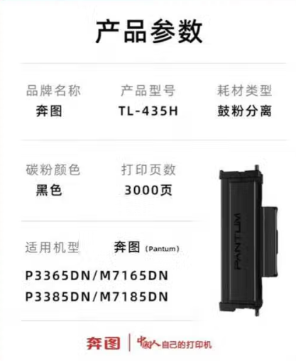 奔图(PANTUM) TL-435H 原装粉盒大容量 适用奔图P3365DN/P3385DN/M7165DN/M7185DN打印机硒鼓 碳粉盒 墨盒