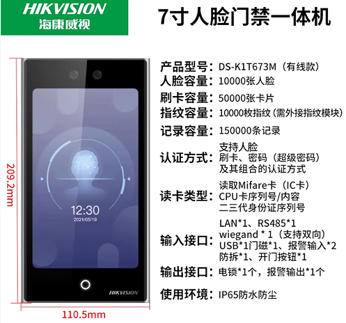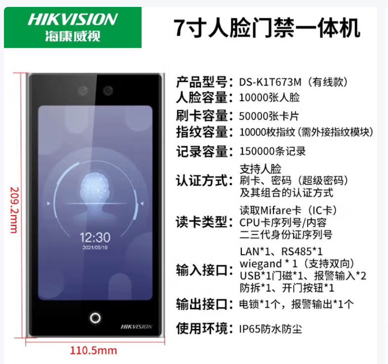 海康威视(HIKVISION) DS-K1T673M 人脸识别刷卡密码门禁一体机(含支架及开门按纽)
