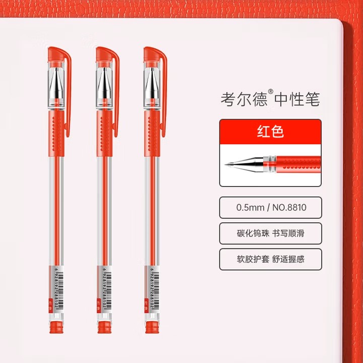 考尔德 8810 中性笔0.5mm经典办公子弹头 红色/12支