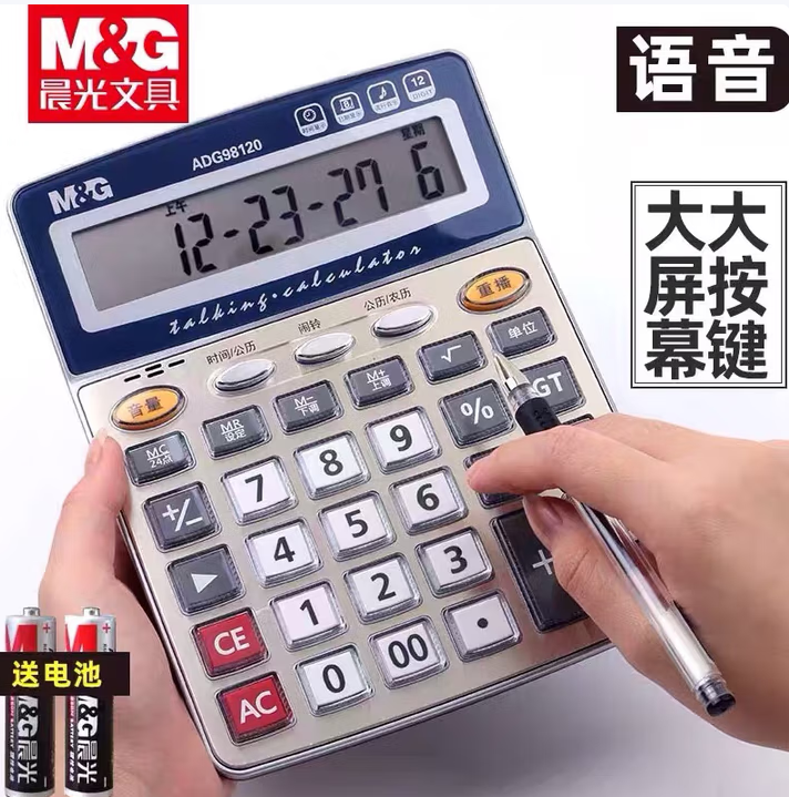 晨光(MG) 电子计算器财务专用语音款大号计算机器商用大按键大屏幕可爱真人发音计算机办公室用便携 【热销款 超大号】98120灰白色/语音款