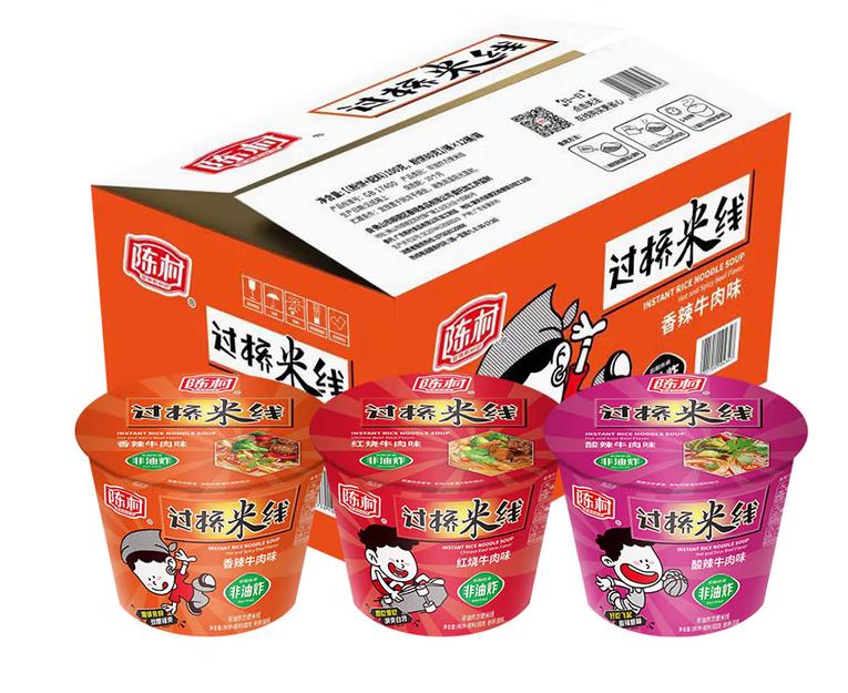 陈村 90461过桥米线桶装三种口味可选 红烧+香辣+酸辣牛肉 1桶