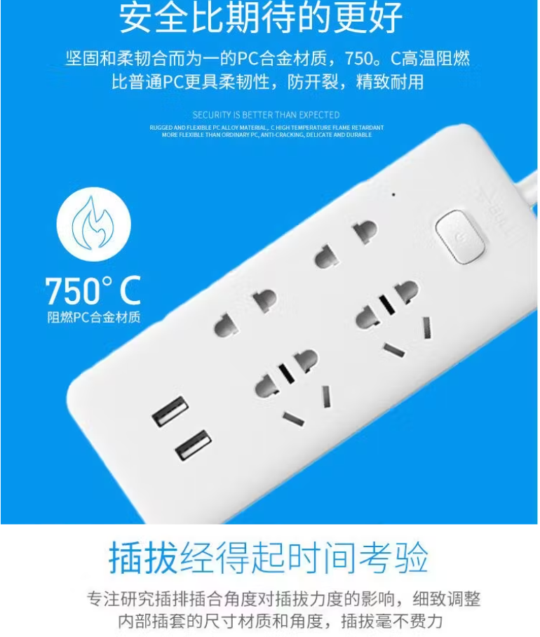 公牛(BULL) GN-UUA124 双USB 4位总控开关插排1.5米
