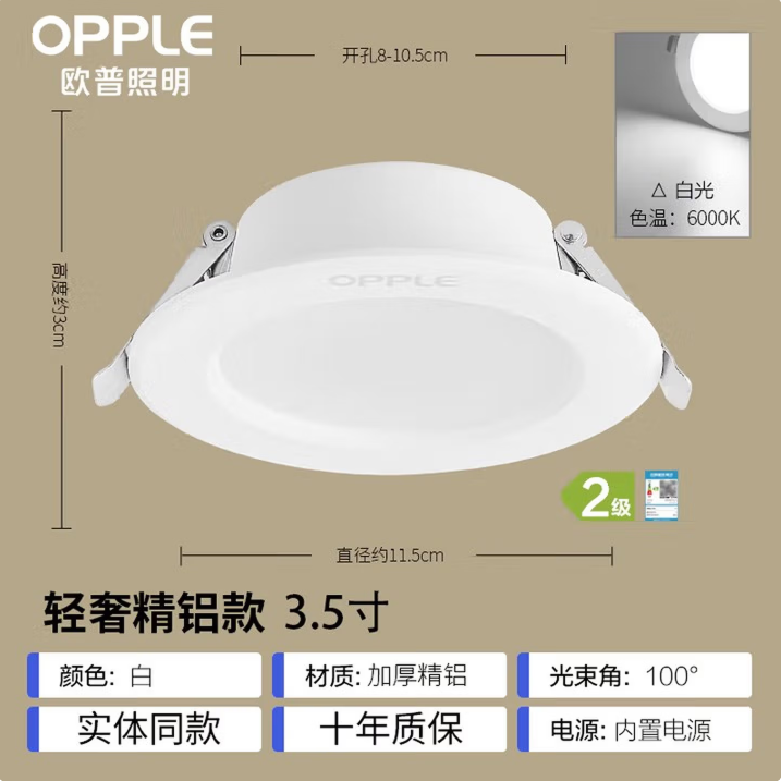 欧普照明(OPPLE) 3.5寸led筒灯6W超薄嵌入式开孔80-100 mm亮白光