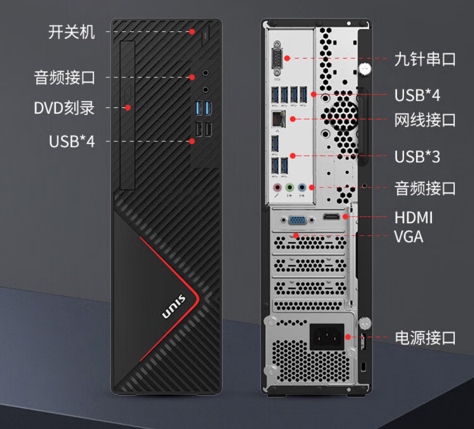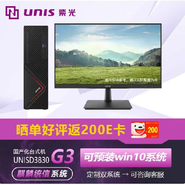 紫光(UNIS) D3830 G3 国产台式机电脑(海光3350/8G+512G固态/2G独显23.7显示器)