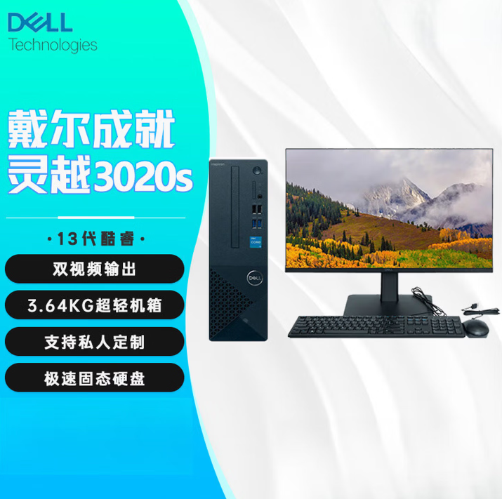 戴尔(DELL) 灵越3020S13代酷睿办公家用台式电脑主机 主机+戴尔23.8寸显示器 全新13代_i5_13400_16G_512G_集