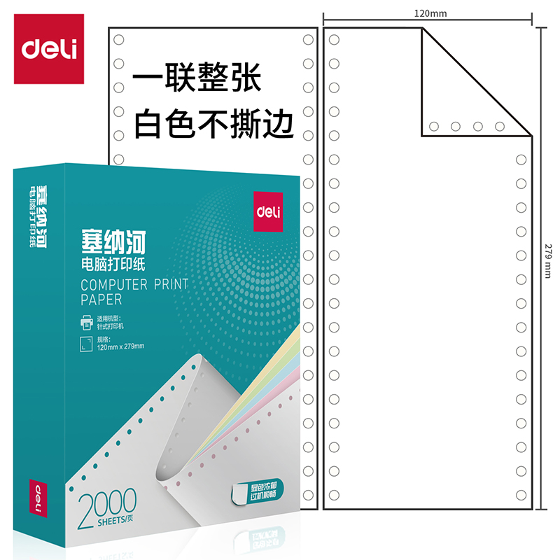 得力(deli) 塞纳河N120-1电脑打印纸(白色不撕边)(2000页/盒)