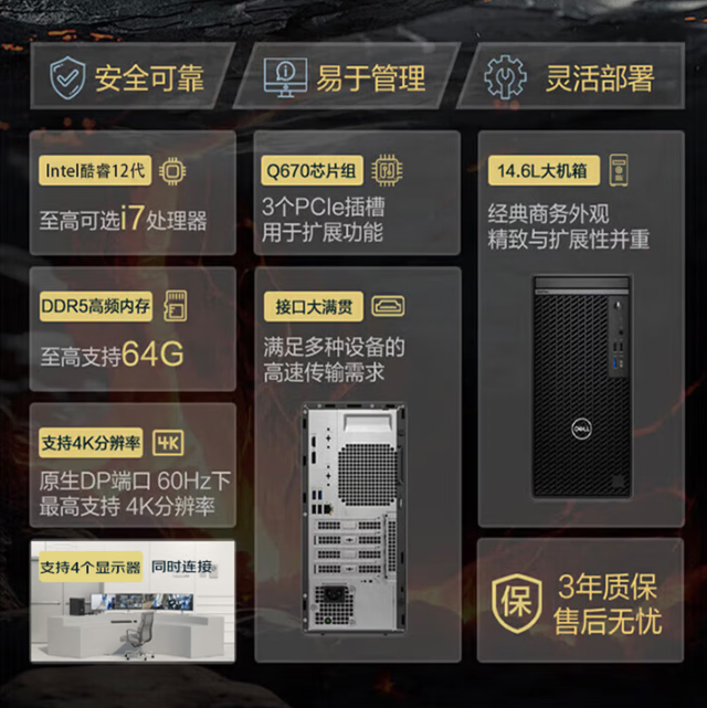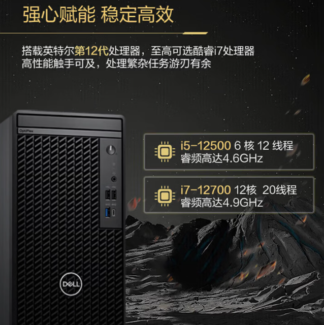 戴尔(DELL) OptiPlex7020MT 12代酷睿商务办公台式电脑主机 设计绘图财务企业采购整机全套 升级款 HT37 主机含键鼠套装 i5-12500 16G内存 1TB固态硬盘