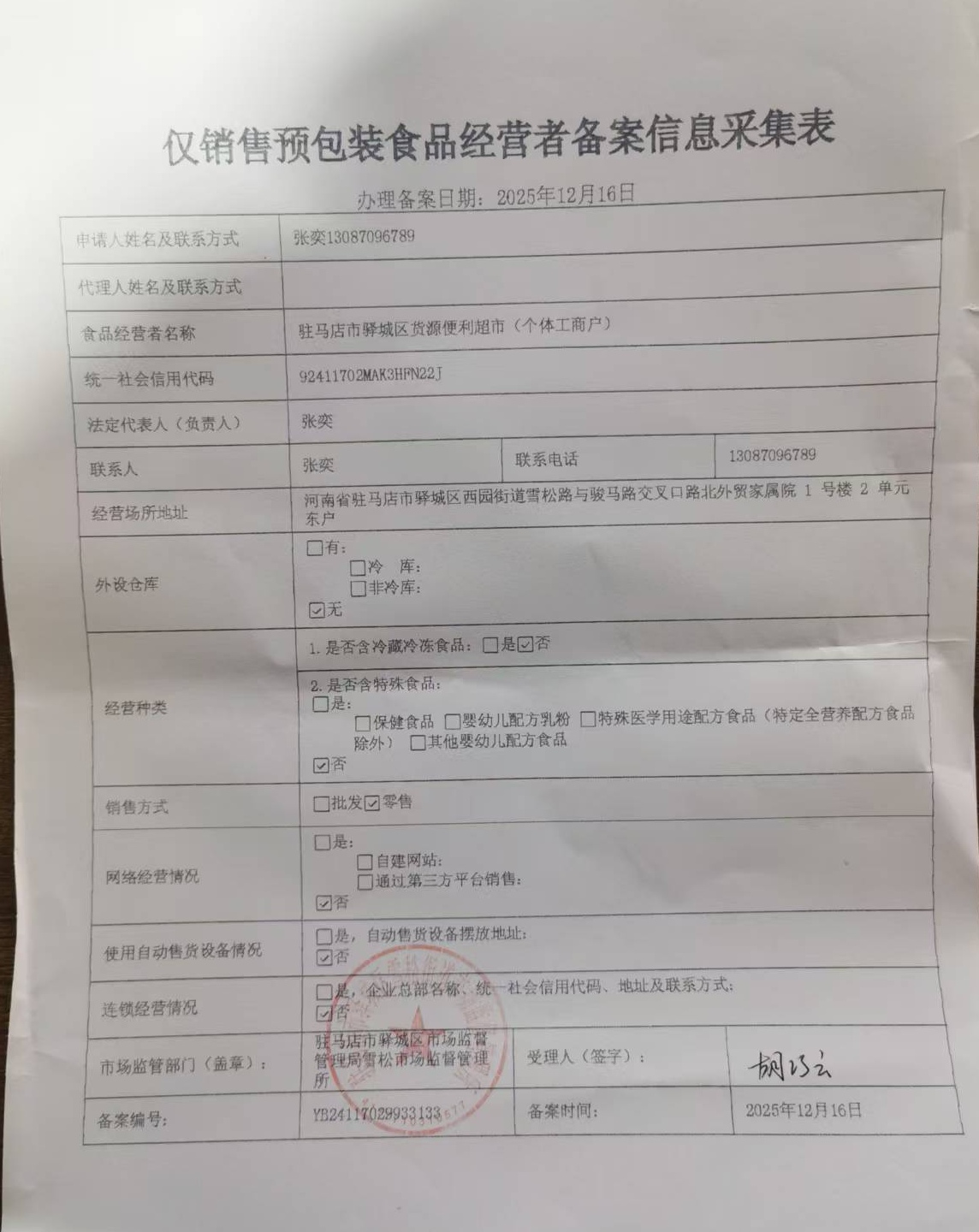 驻马店市驿城区货源便利超市(个体工商户)