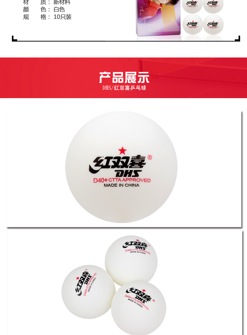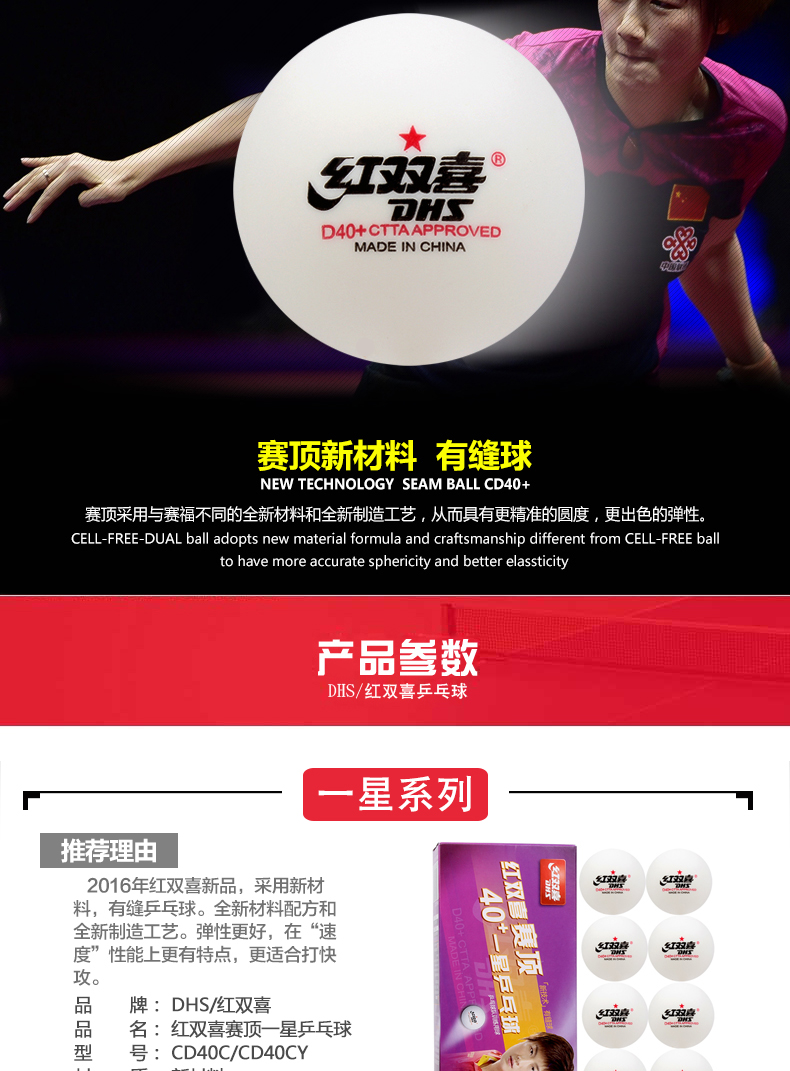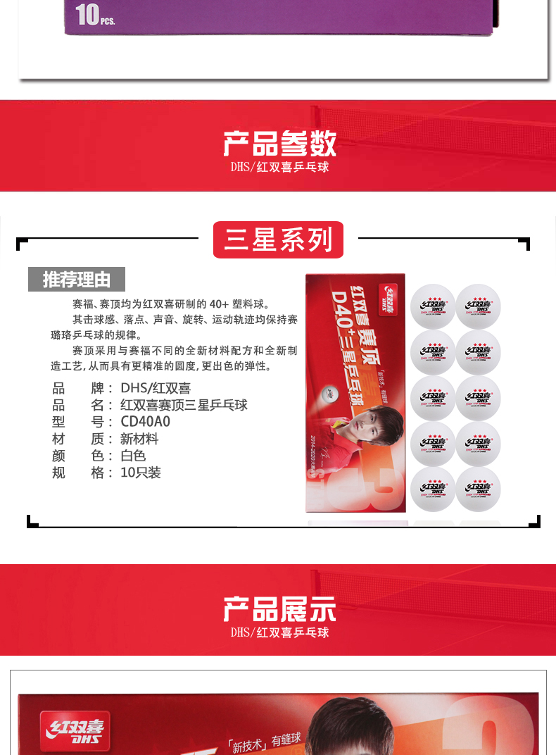 商品名称:红双喜乒乓球三星级一星二星3星级40+新材料比赛训练用球耐打兵乓