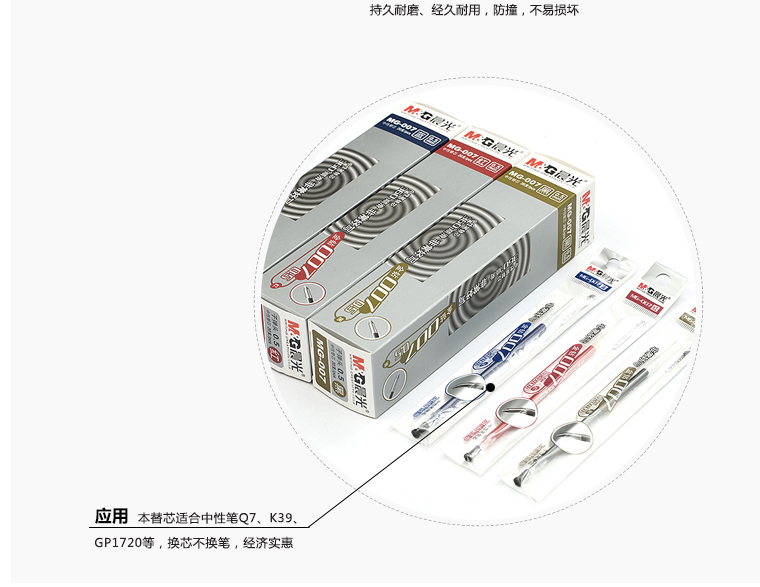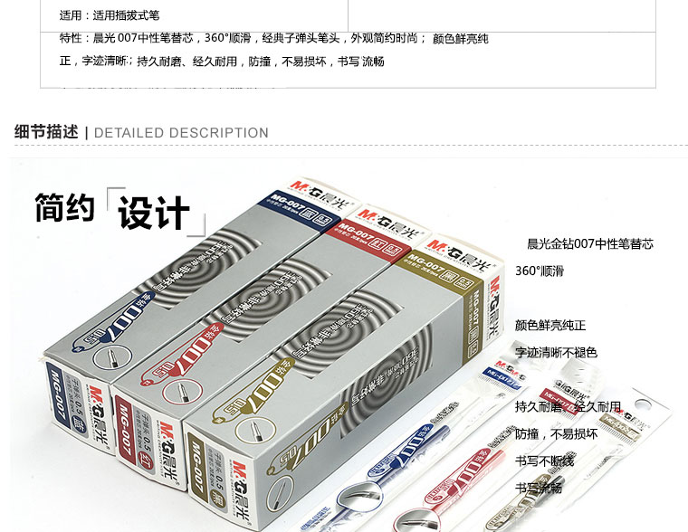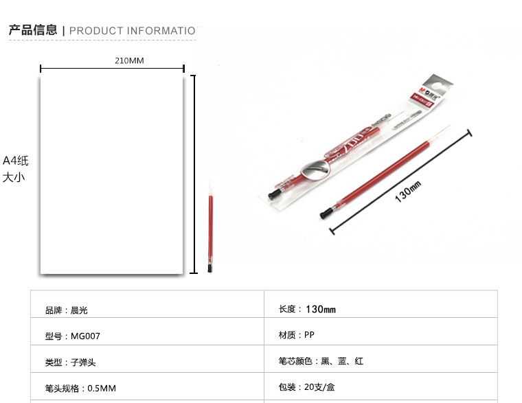 晨光(MG) MG-007 红色0.5mm中性笔签字水笔全针管笔芯替芯 子弹头 葫芦头办公用 全针管笔芯 20支