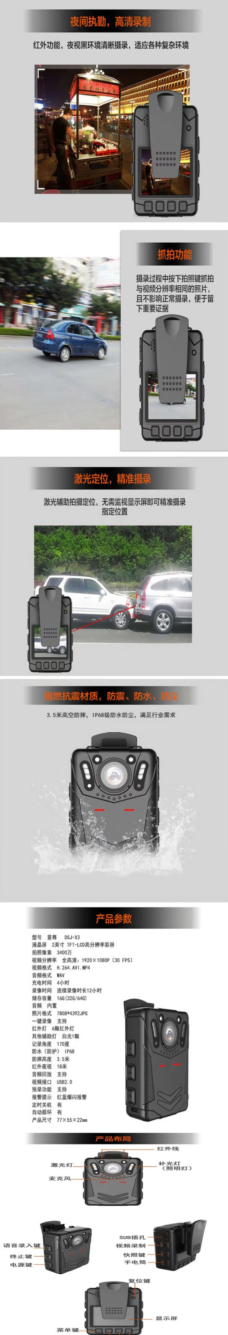 警尊 DSJ-X3 高清执法记录仪 64G