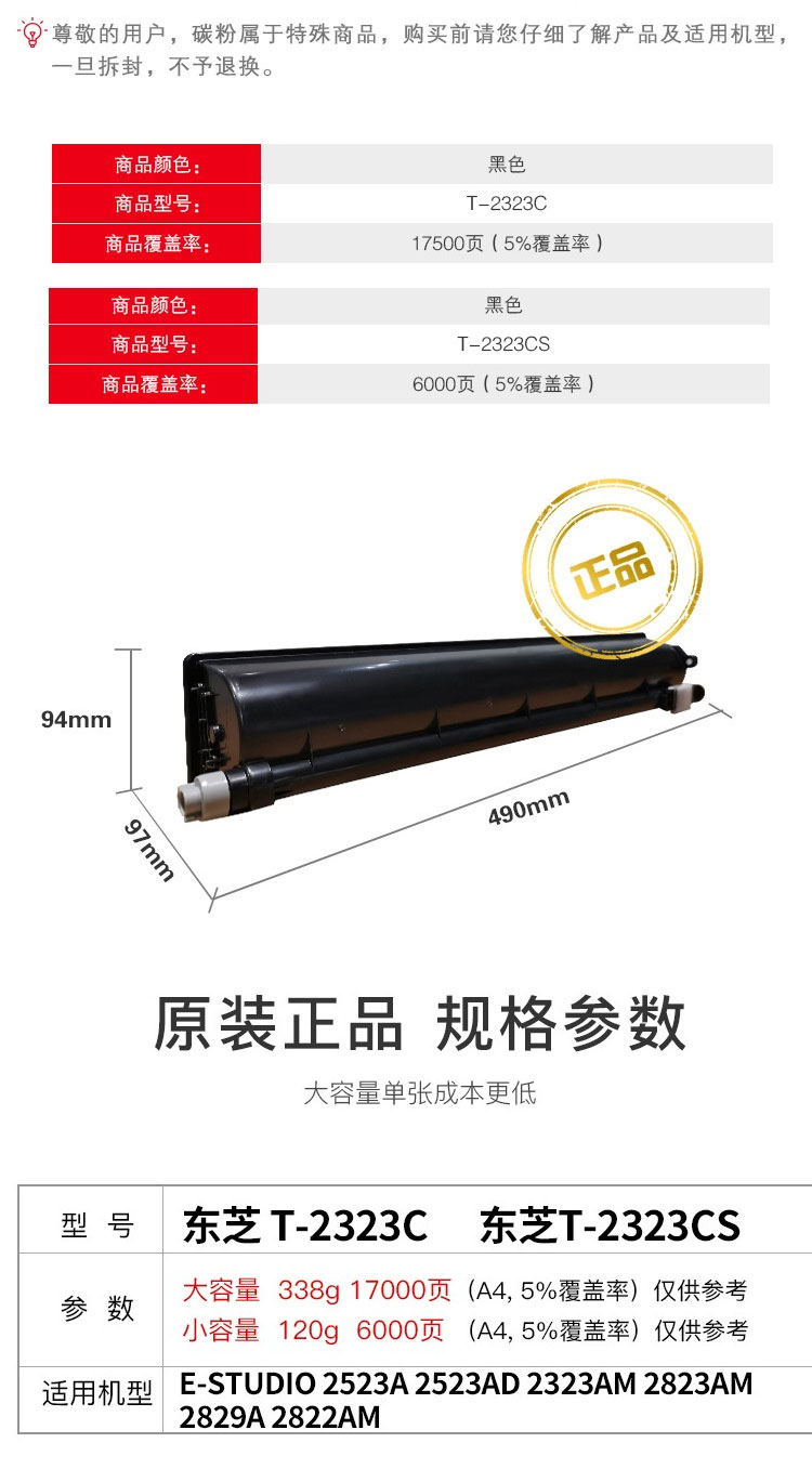 东芝(TOSHIBA) T-2323C黑色粉盒适用2523A/2523AD/2323AM/2822AM/2829A复印机墨粉盒碳粉(17500页)