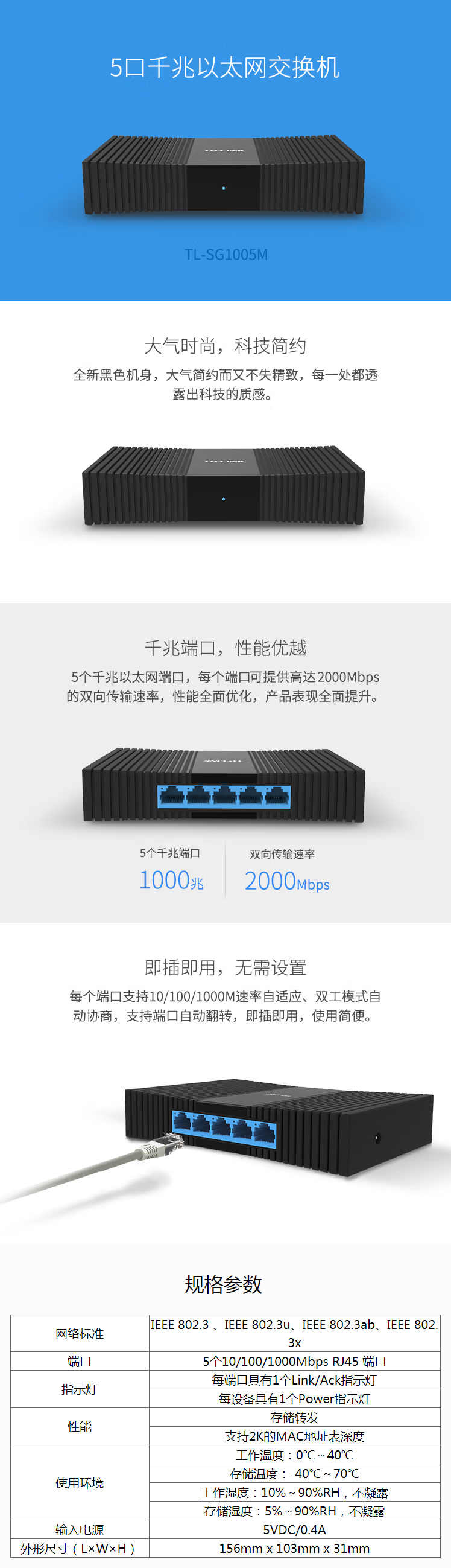 普联(TP-LINK) TL-SG1005M 5口千兆交换机 4口企业级交换器 监控网络网线分线器 分流器 兼容百兆