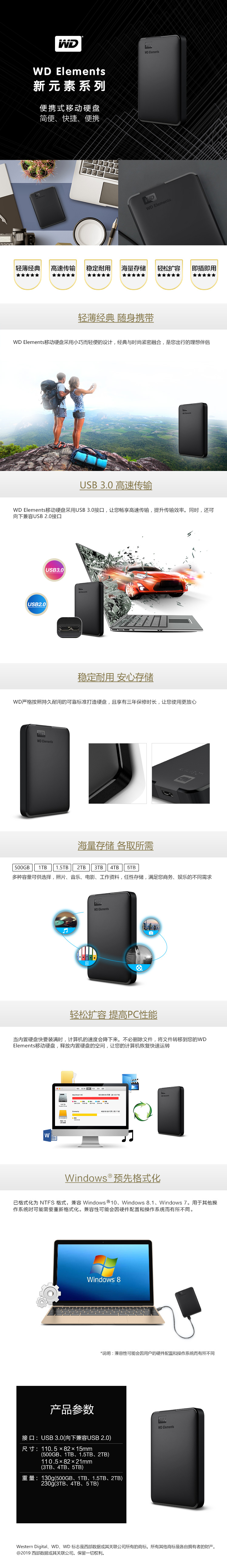 西部数据(Western Digital) 2TB 移动硬盘USB3.0移动硬盘Elements SE 新元素系列2.5英寸