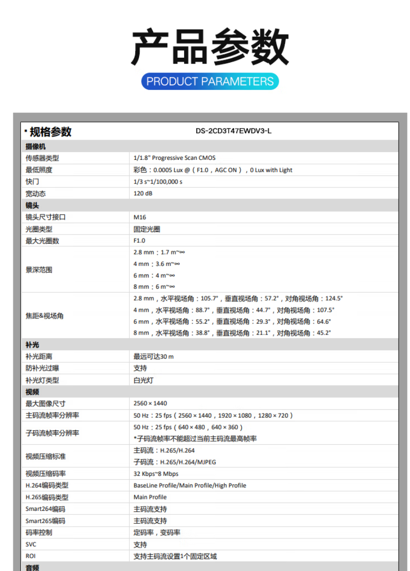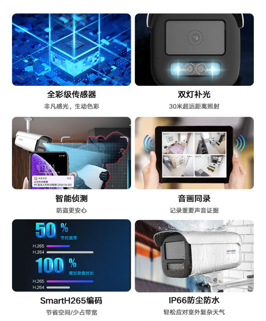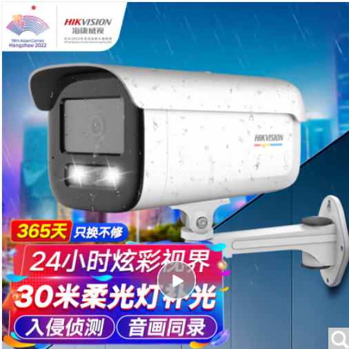 海康威视(HIKVISION) 监控摄像头室外全彩夜视高清网络摄像机3T47EWDV3-L4mm