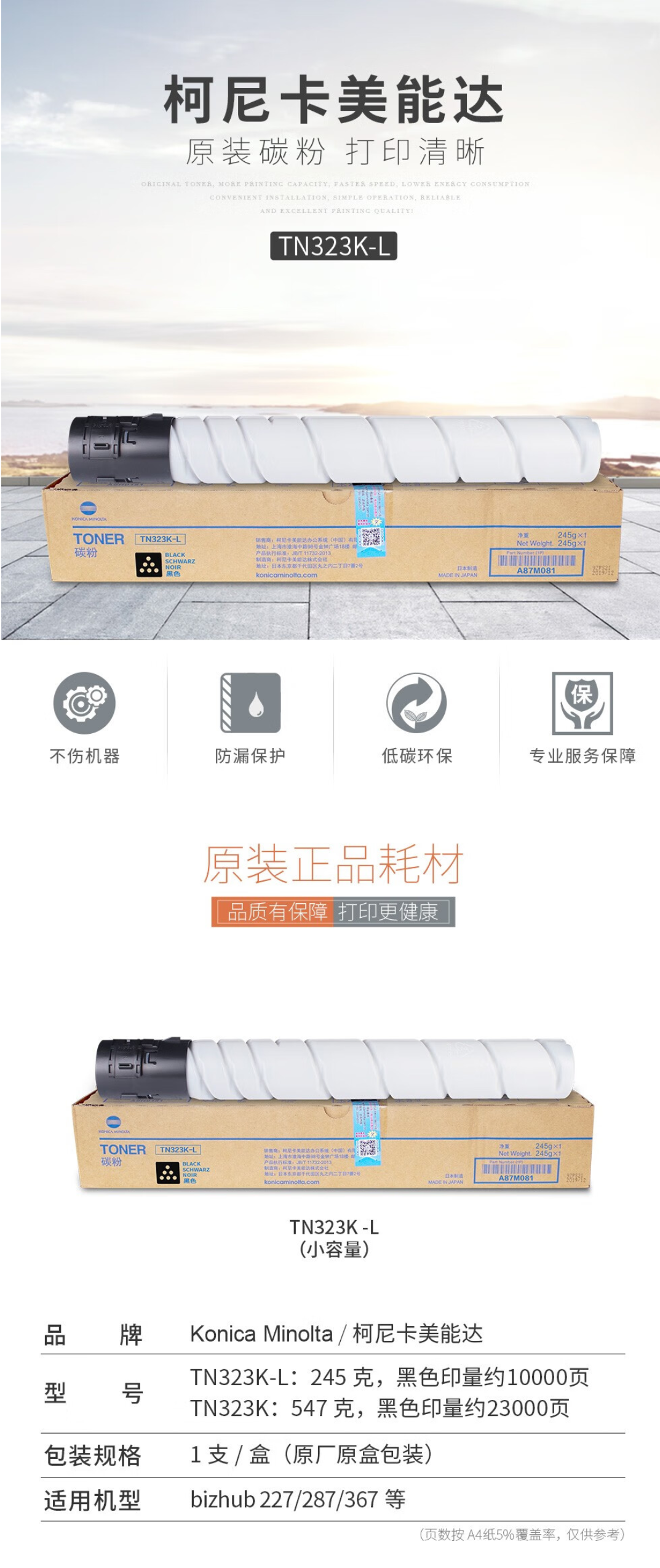柯尼卡美能达 TN323/TN323H原装粉盒碳粉 适用bizhub227/287/367