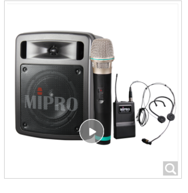咪宝Mipro MA300D音响大功率户外K歌无线蓝牙音箱手提便携式移动喊话器扩音器喇叭带麦克话筒 MA-300D 配1手持1头戴话筒
