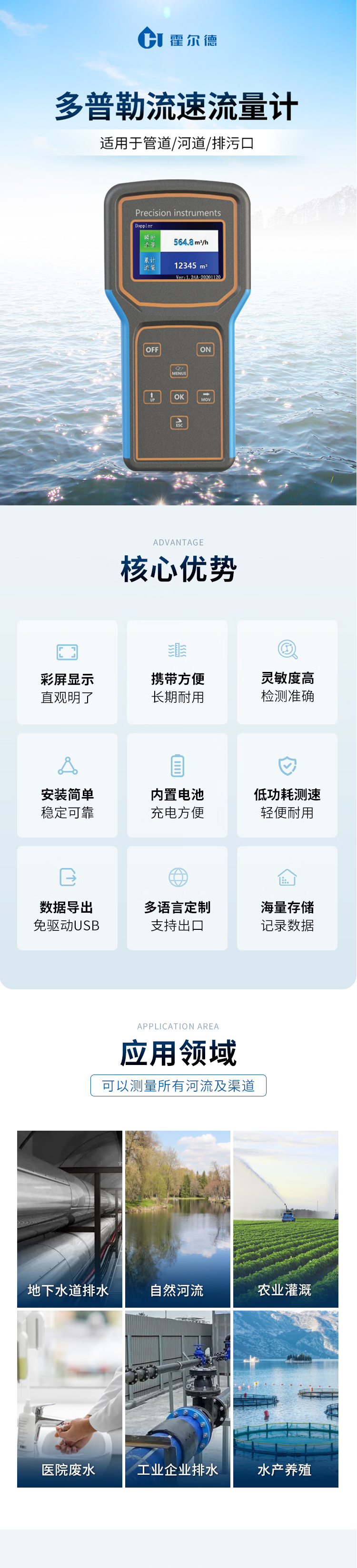 霍尔德 电子 便携式多普勒流速流量测定仪手持超声波河流河道排水渠明渠流量计 便携式多普勒流量计 HD-DP501-AB