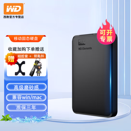 西部数据(Western Digital) 2TB 移动硬盘 USB3.0 Elements 新元素系列2.5英寸 机械硬盘 外置存储 手机笔记本电脑外接 标配(+保护套)
