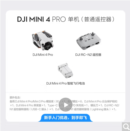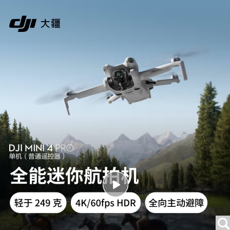 大疆 Mini 4 Pro 单机(普通遥控器版)全能迷你航拍机 入门级无人机 高清专业航拍相机无损竖拍
