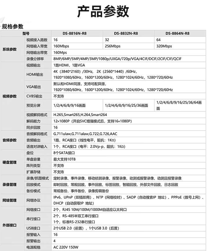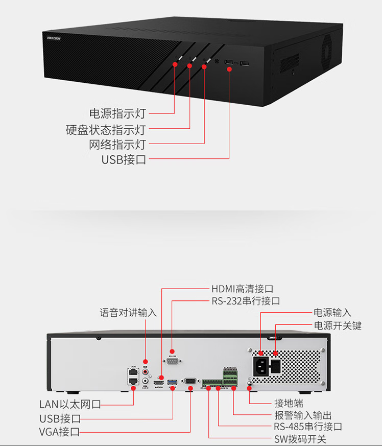 海康威视(HIKVISION) DS-8832N-R8监控硬盘录像机32路8盘位兼容10T监控硬盘支持800万摄像网络监控主机