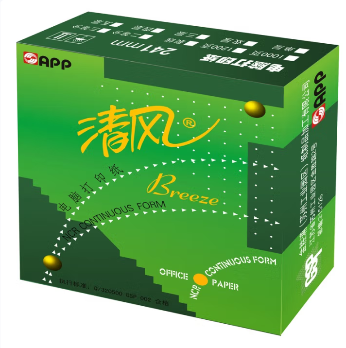 清风 241-3-1/2 三联二等分撕边电脑打印纸 彩色针式打印纸 241-3-1/2 (撕边 色序:白红黄 1000页/箱)