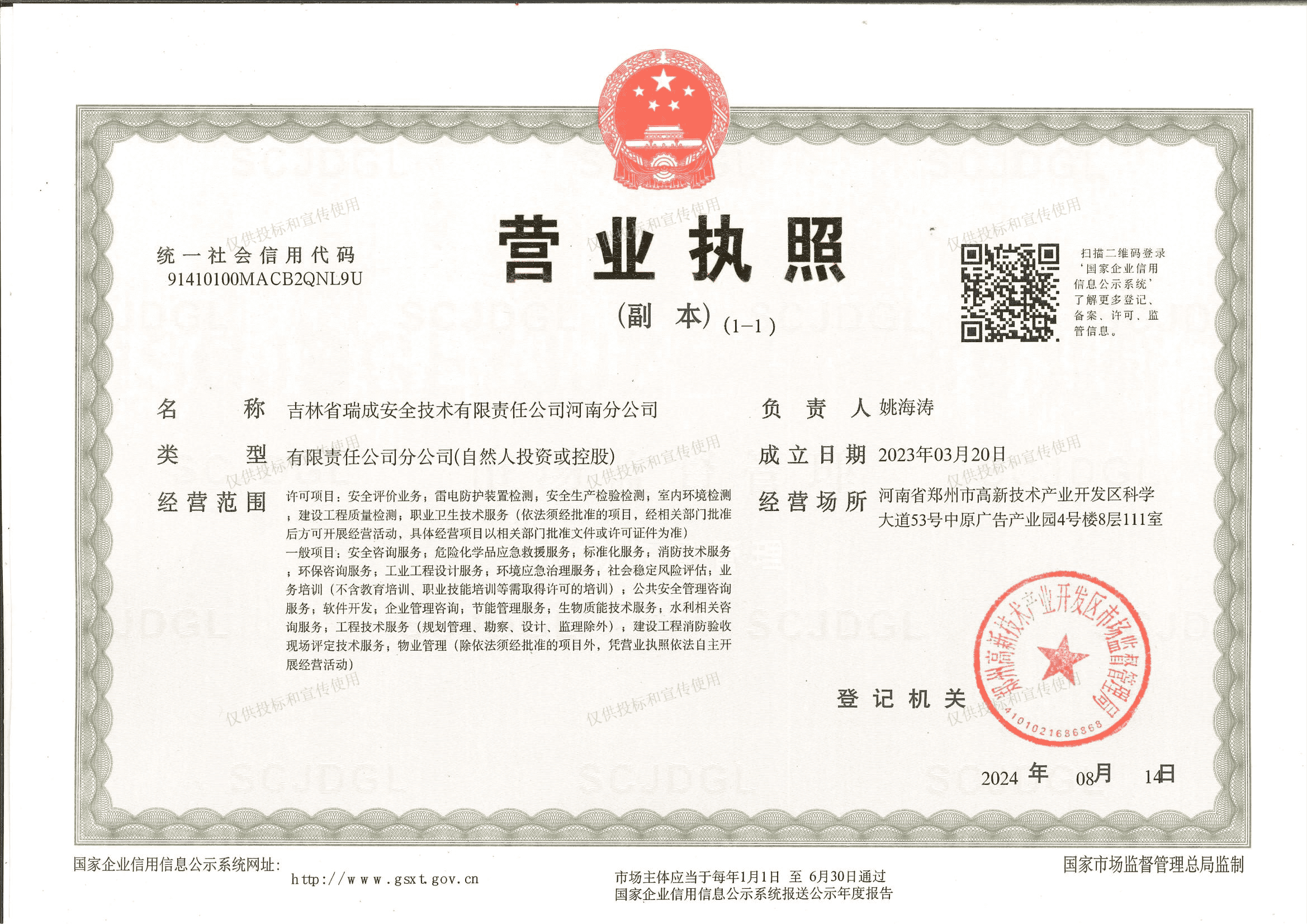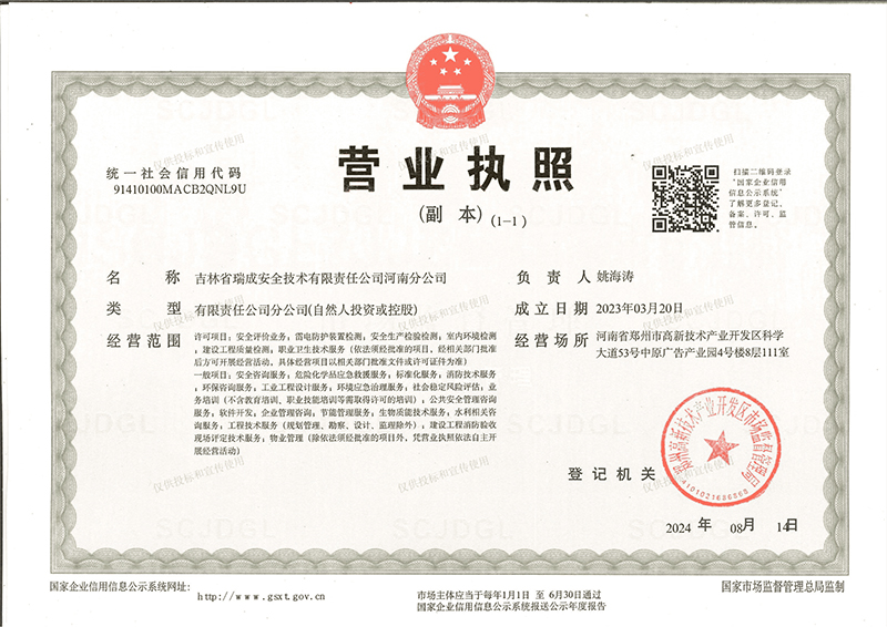 吉林省瑞成安全技术有限责任公司河南分公司