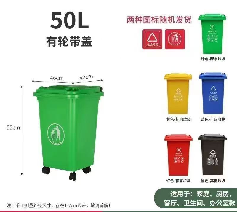 三公利华 垃圾桶,塑胶,适用场景户外,容量50L,55cm*46cm
