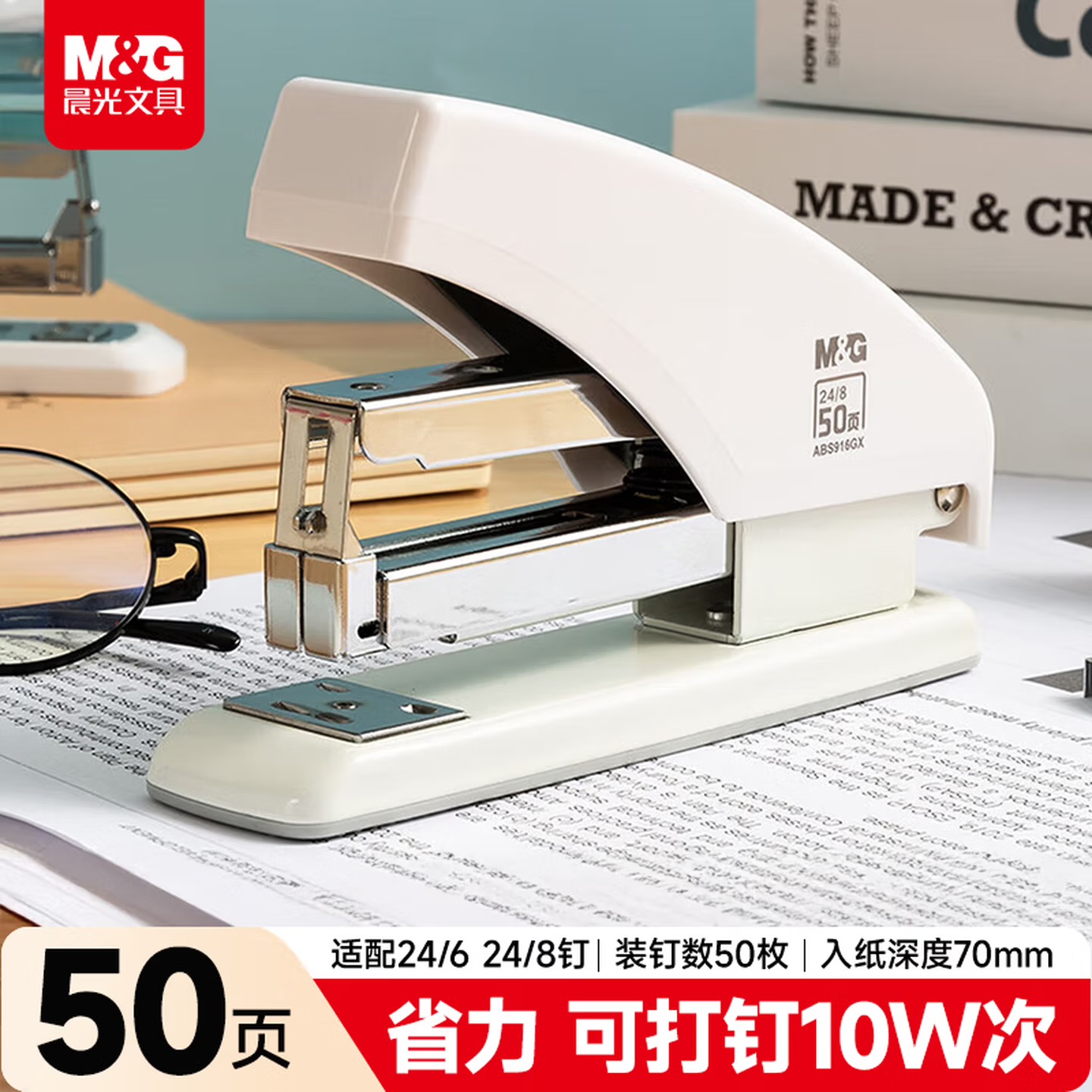 晨光(MG) 12号省力金刚系列厚层订书器 试卷文件装订 学生办公轻巧便携手握式省力定书机ABS916GX