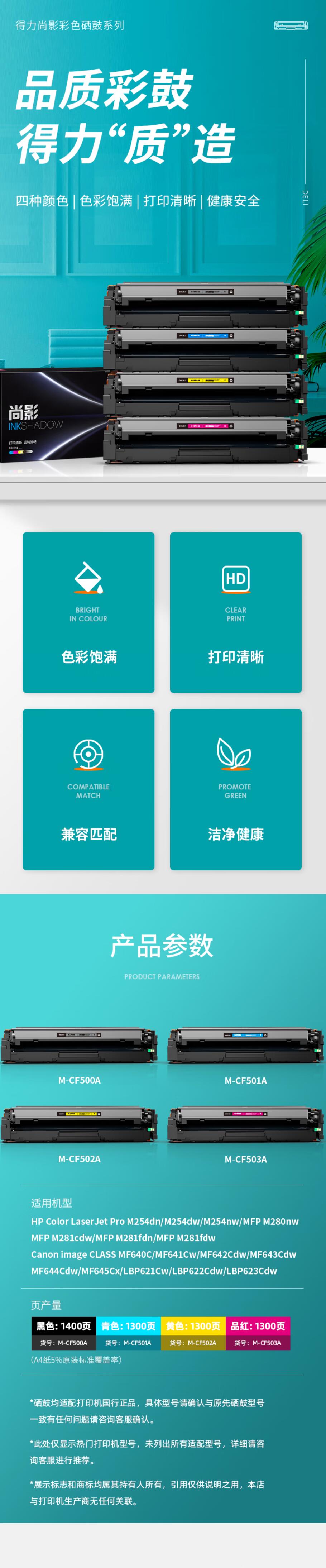 得力(deli) 尚影硒鼓 M-CF500A 打印量 1400页 含芯片 黑色 1支