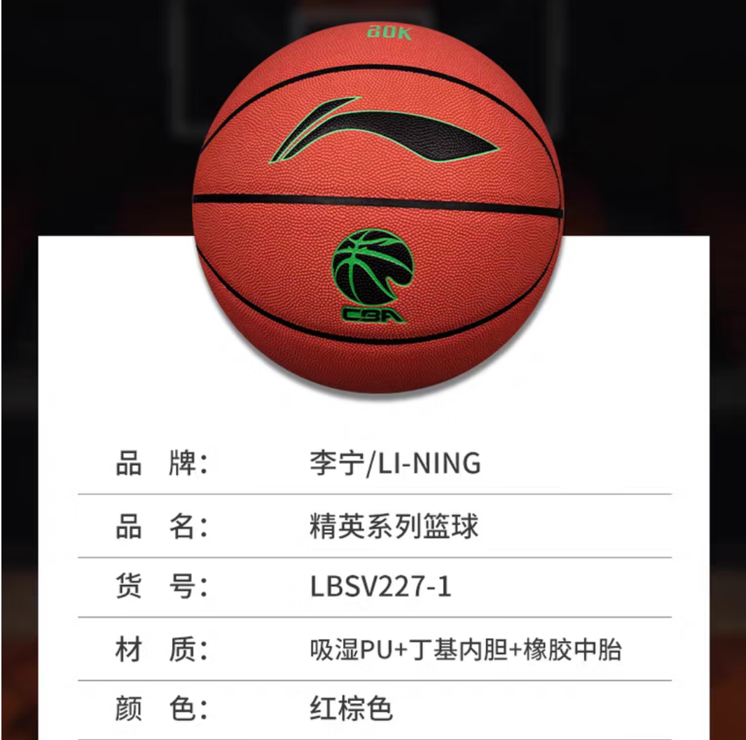 李宁(LI-NING) 篮球 LBSV227-1/7号 PU 发泡中胎 比赛篮球 吸湿版