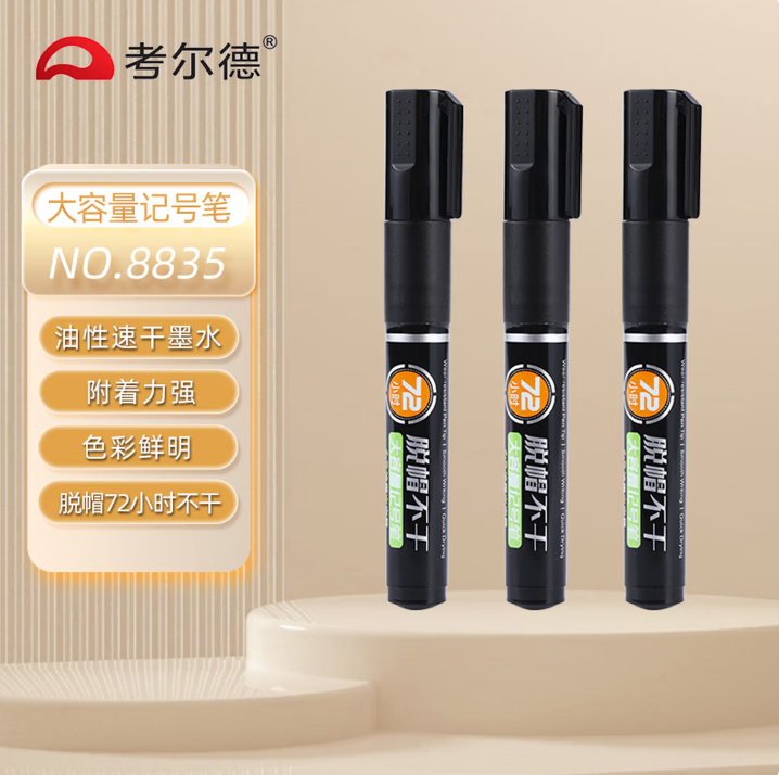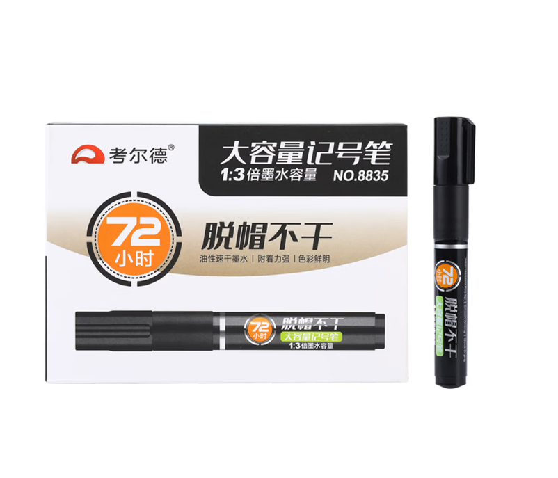 考尔德 (kaoerde)品牌大容量脱帽72小时不干速干防水防油记号笔办公物流【8835】 黑色 10支/盒