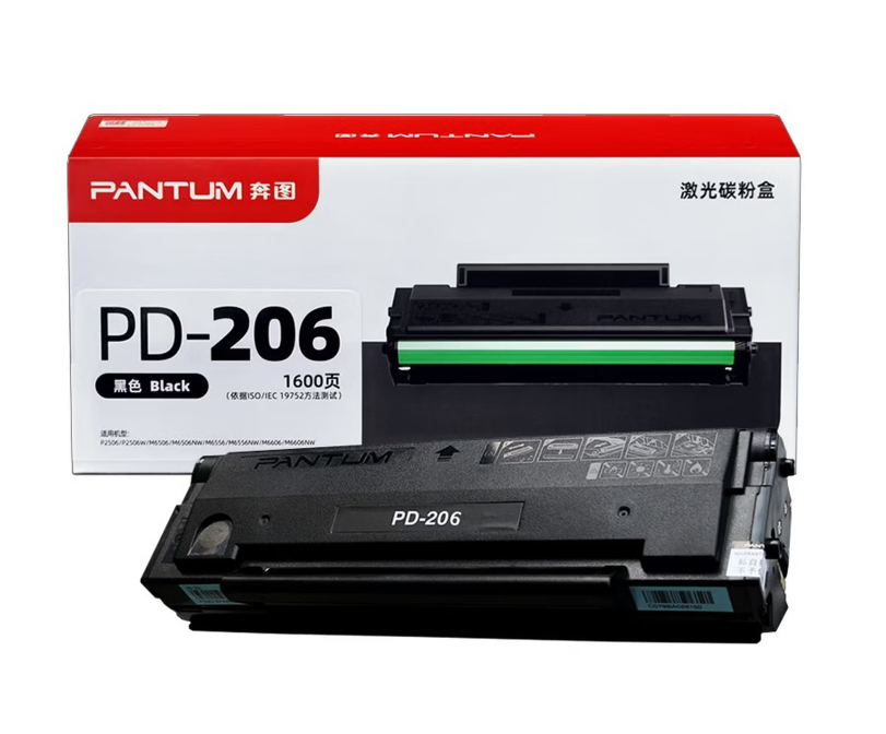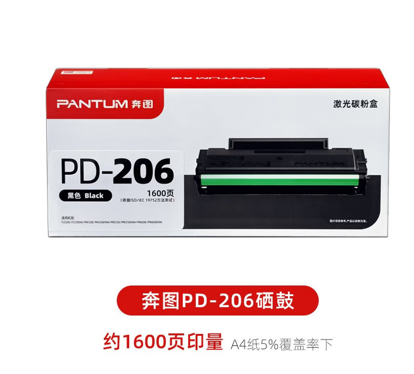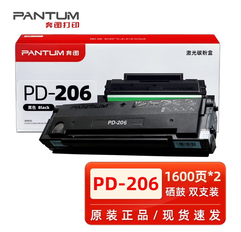 奔图(PANTUM) 原装PD-206硒鼓 p2506 p2506w m6506 m6506nw P2510w m6606nw 原装PD-206硒鼓双支装 1600页*2