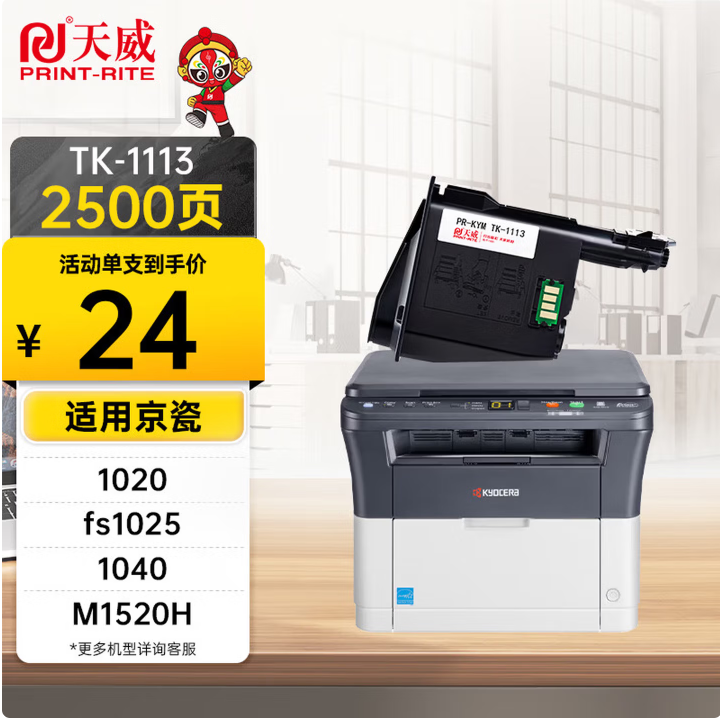 天威(PrintRite) tk1113京瓷打印机墨盒 适用1020粉盒 fs1025 墨粉盒 1040 M1520H硒鼓 1120 1041 1061DN MFP单支装