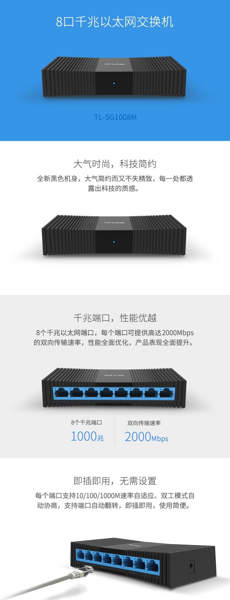 普联(TP-LINK) TL-SG1008M 8口千兆交换机 企业级交换器 监控网络网线分线器 分流器 兼容百兆