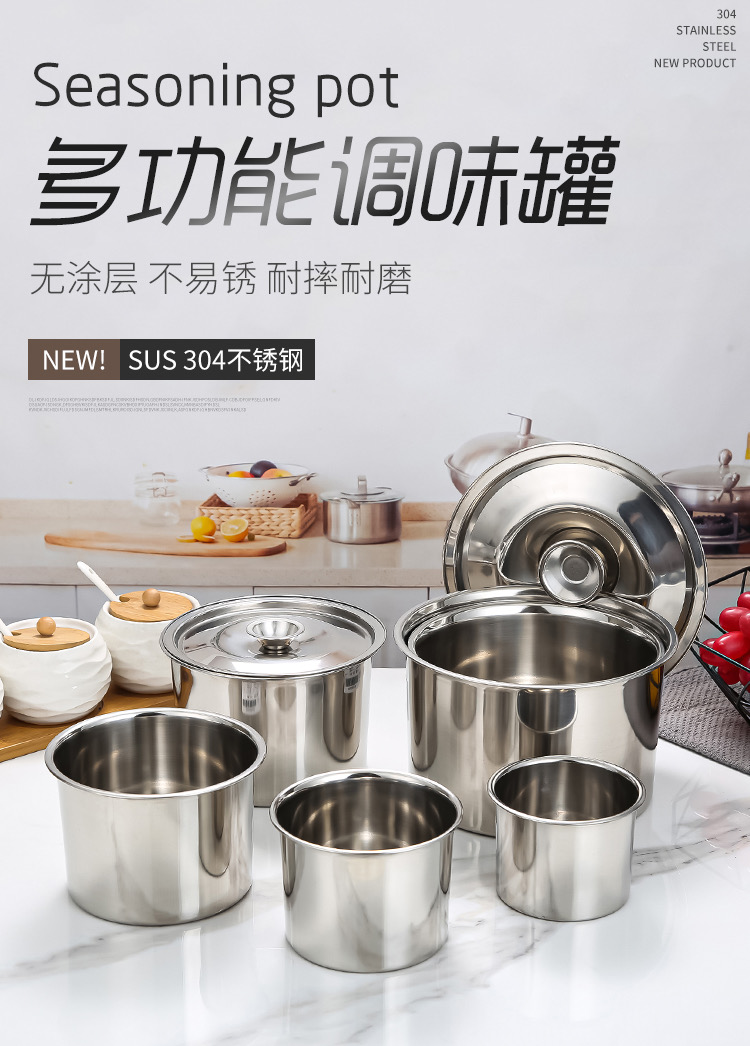 洋业 加厚不锈钢调料盒 调味缸带盖 大号