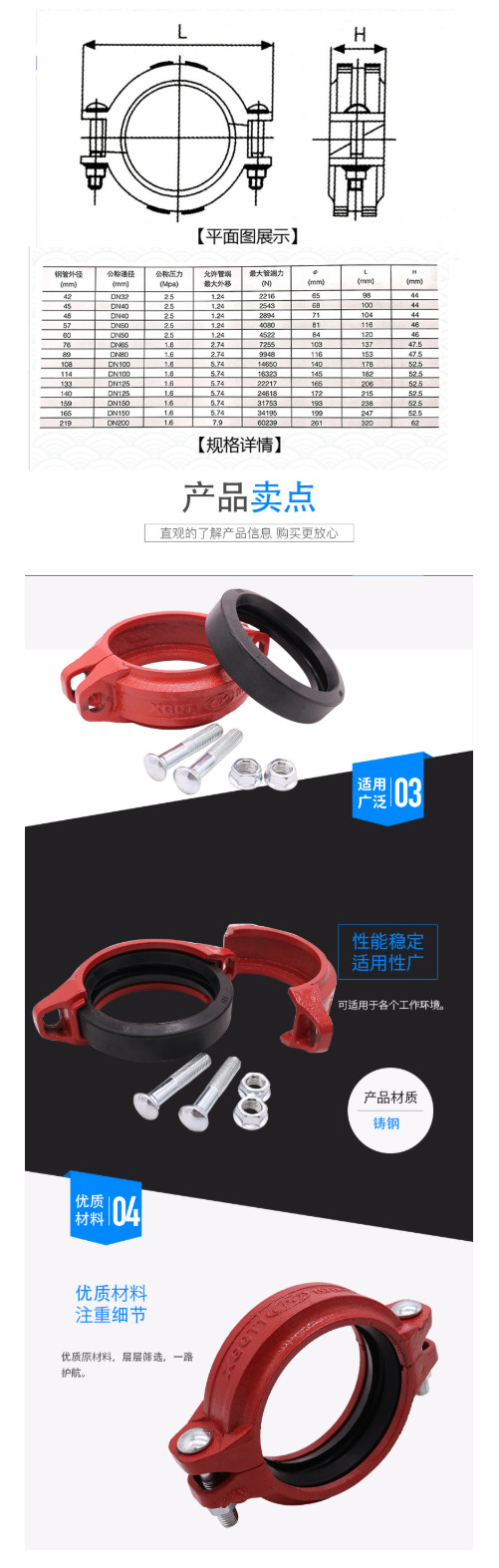 柳成 DN200消防管道卡箍 消防管件管道抱箍刚性连接配件钢卡球墨铸铁水管沟槽卡箍钢卡