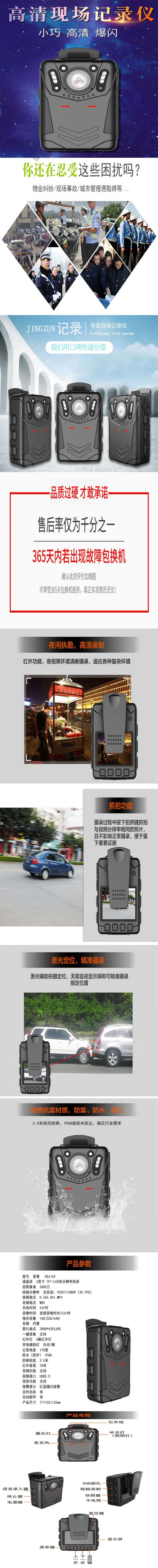 警尊 DSJ-X3执法记录仪高清红外夜视现场执法仪安防音视频行车记录仪 128G